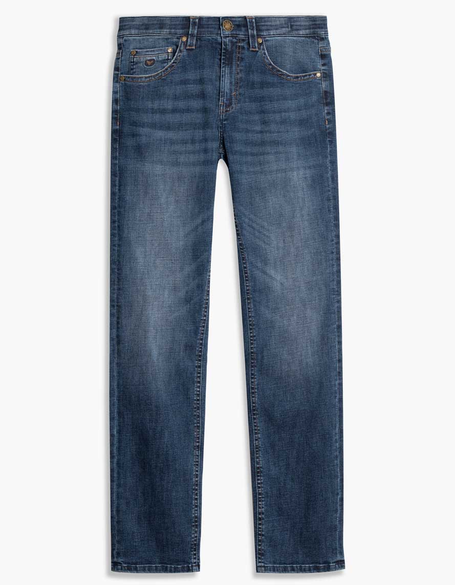 Made from 63% cotton, 33% polyester, 2% spandex, and 2% rayon.