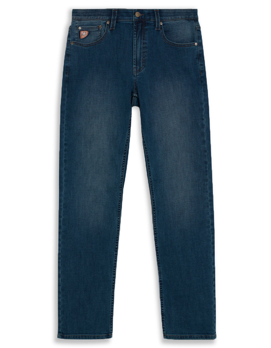 A bootcut fit and stretch denim make these mid-rise jeans a trendy and contemporary choice for your casual looks.