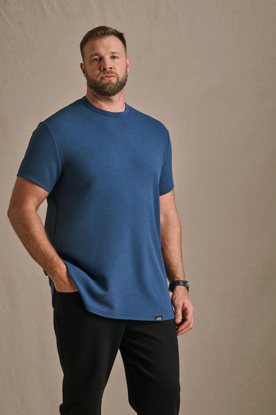 Bullet T-Shirt (aka the Michael) - the perfect addition to your wardrobe for a sophisticated casual look. Made from premium-quality materials, this tee is wrinkle-free and quick to dry, ensuring it stays looking sharp all day long. With its unique bullet texture, this t-shirt is perfect for elevating your casual look. The inside of this tee has an athletic feel with an elevated and textured exterior. The classic crewneck design and regular fit make it an easy-to-wear staple. Experience the perfect blend of style and practicality with our Bullet T-Shirt.