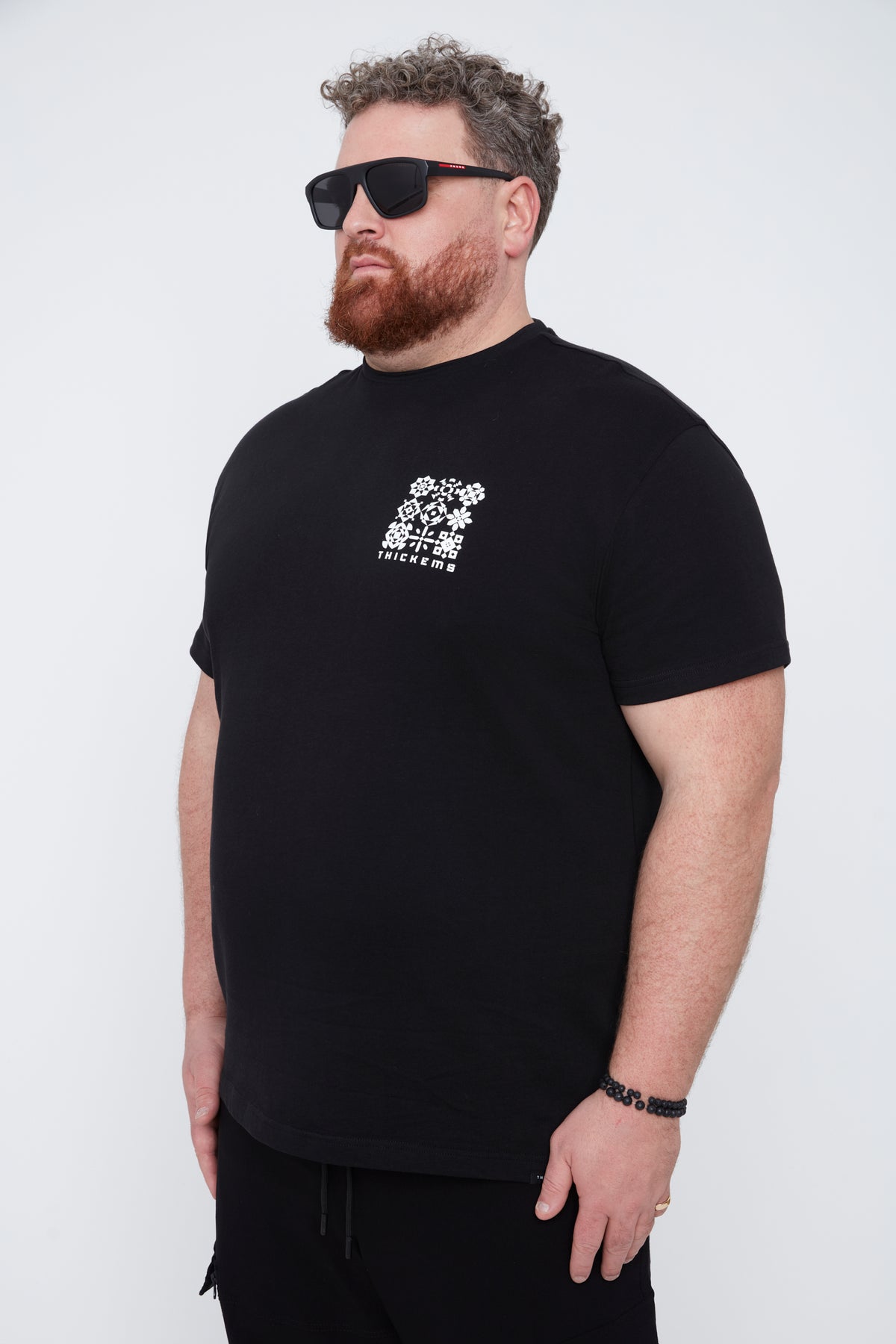 Revitalize your wardrobe with Thickems' Short Sleeve Crew Neck Shirt, designed to deliver both comfort and style for big and tall men. This shirt is more than a basic essential; it's a cornerstone of contemporary plus-size fashion. With distinctive branded graphics on the front and a vibrant, eye-catching flower graphic on the back, it effortlessly adds a modern touch to any outfit. Crafted from 100% cotton, this shirt ensures all-day breathability and comfort.