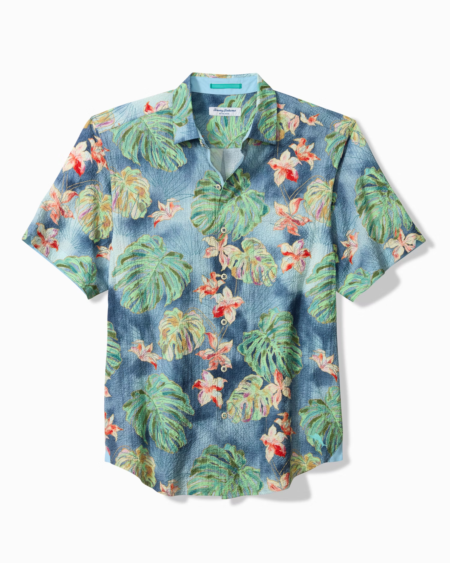 Featuring a subtle pucker texture and vibrant tropical print, this short-sleeve shirt offers easy-breezy comfort through its cool, lightweight fabric with just enough stretch.